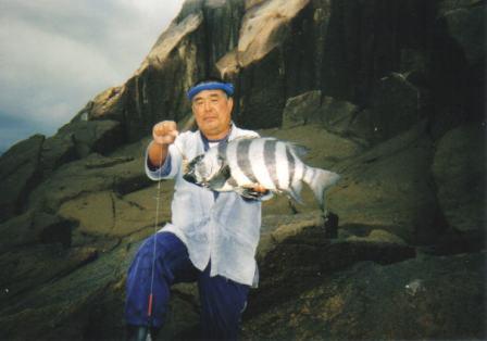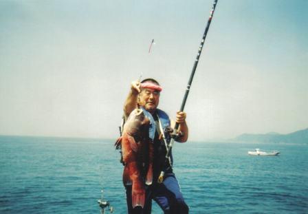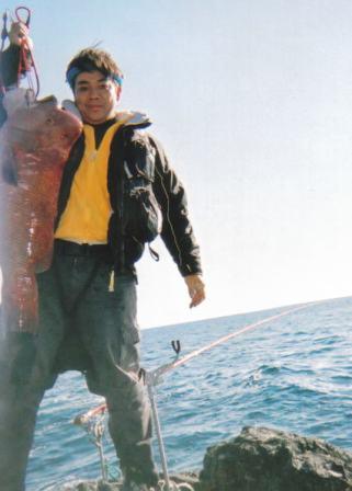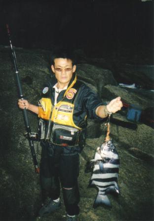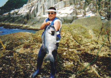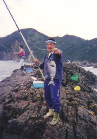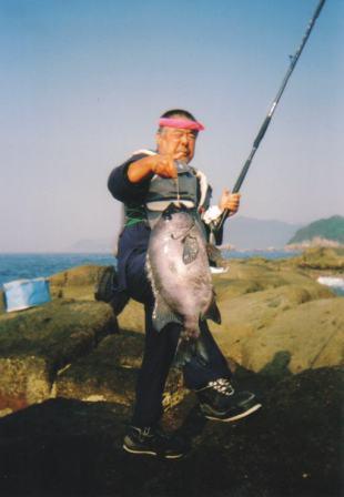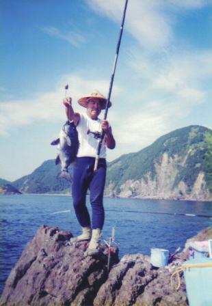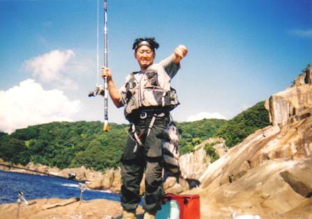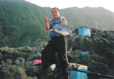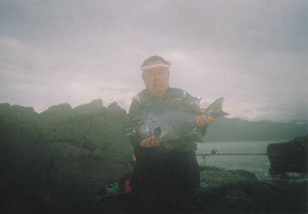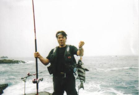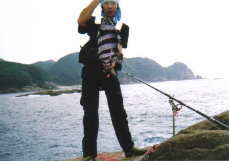 | 平成16年6月4日 沖の平島にて 中部磯友会:佐藤良樹 初挑戦の沖の平島で59.5a・3.8` 嬉しい1枚 | |