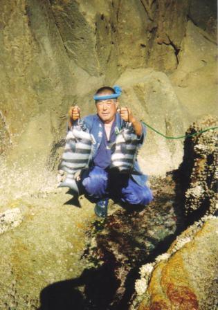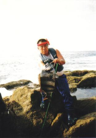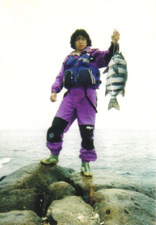 | 平成12年10月 中部磯友会:竹下二郎 二木島で行われた全磯中部支部の秋の大会 コザハエで釣った53aのイシダイで3位入賞 | |