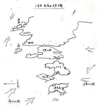 |  |  昭和55年6月6日 中大黒の沖向きポイント 65aのイシダイは、南からの潮が沖大黒 との水道を勢いよく流れた時に喰ってきた この日の水温は18℃ |