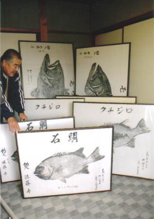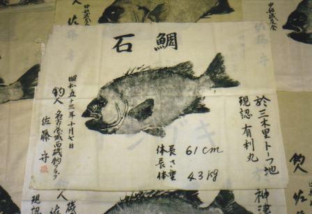 |  |  オヤジが若かった頃に釣った同サイズの魚拓 |