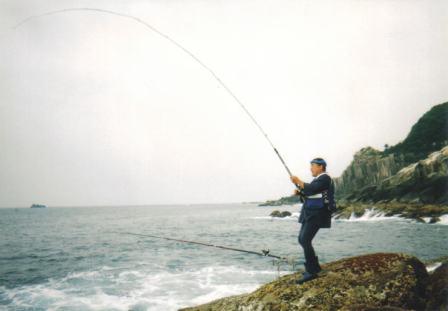 | 古和浦 大島の磯 | 平成15年6月3日 古和浦オジマ 古和浦初挑戦の1投目から竿が舞い込むが 残念ながらカンダイだった |