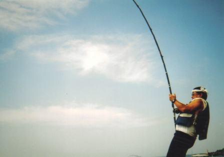 | 71aの銀ワサの引きは強烈 ハイパーターナーがリールシートの直上まで曲がる | |