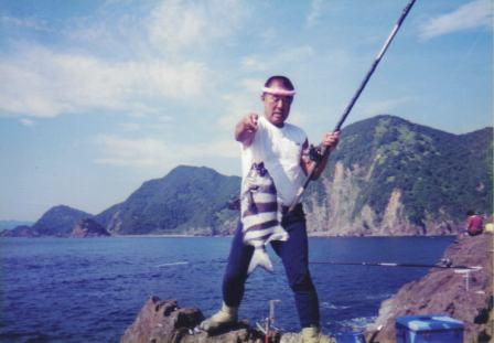 | 平成10年5月20日 金床にて 3.5`のイシダイをブリあげるオヤジ | |