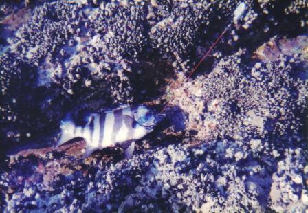 | 神ノ島向き70bのポイントでイシダイをかける | エサはヤドカリを使った |