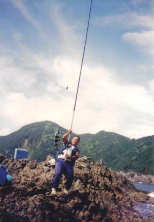 | 平成10年7月30日 トーフの地にて 波が高くトーフをあきらめて地から投げて釣る 61a・4.2` | |