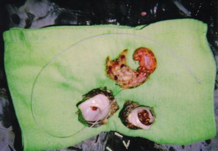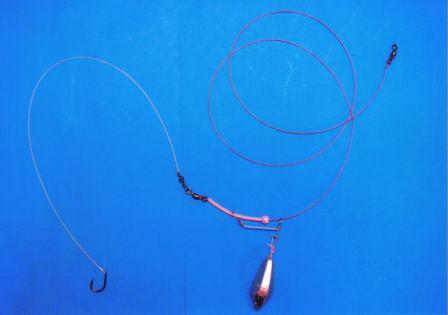 | イシガキにはガンガゼウニが良かった | 平成7年7月18日 沖ゴネにて イシガキを釣った時の全遊動仕掛け クレンサルカン1/0 根ずれワイヤ36番赤ナイロンコート1.8b 全遊動テンビン すて糸8号80a コークサルカン2/0 ハリスワイヤ49本より44番20a ハリ18号 |