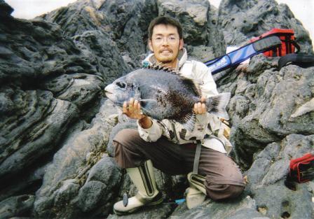 | 平成18年 KS石鯛クラブ:川井氏 式根では珍しい60aオーバーのクチジロ |