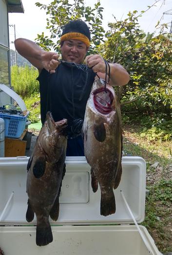 ◇当日の仕掛け 中通しオモリ60号使用の本仕掛け ハリスワイヤー 49本ヨリ #39 1.8b クエ鈎 50号 撒きエサ イワシ × 4箱、メジカ × 1箱 つけエサ 冷凍サバ × 1箱 |